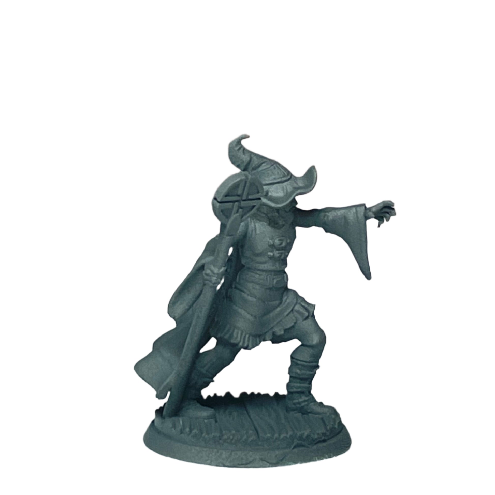 TitanCraft 28mm scale male Human wielding staff. Primed and ready to paint. Digital File not included. Designed by Titancraft. Miniature made by Warhold.