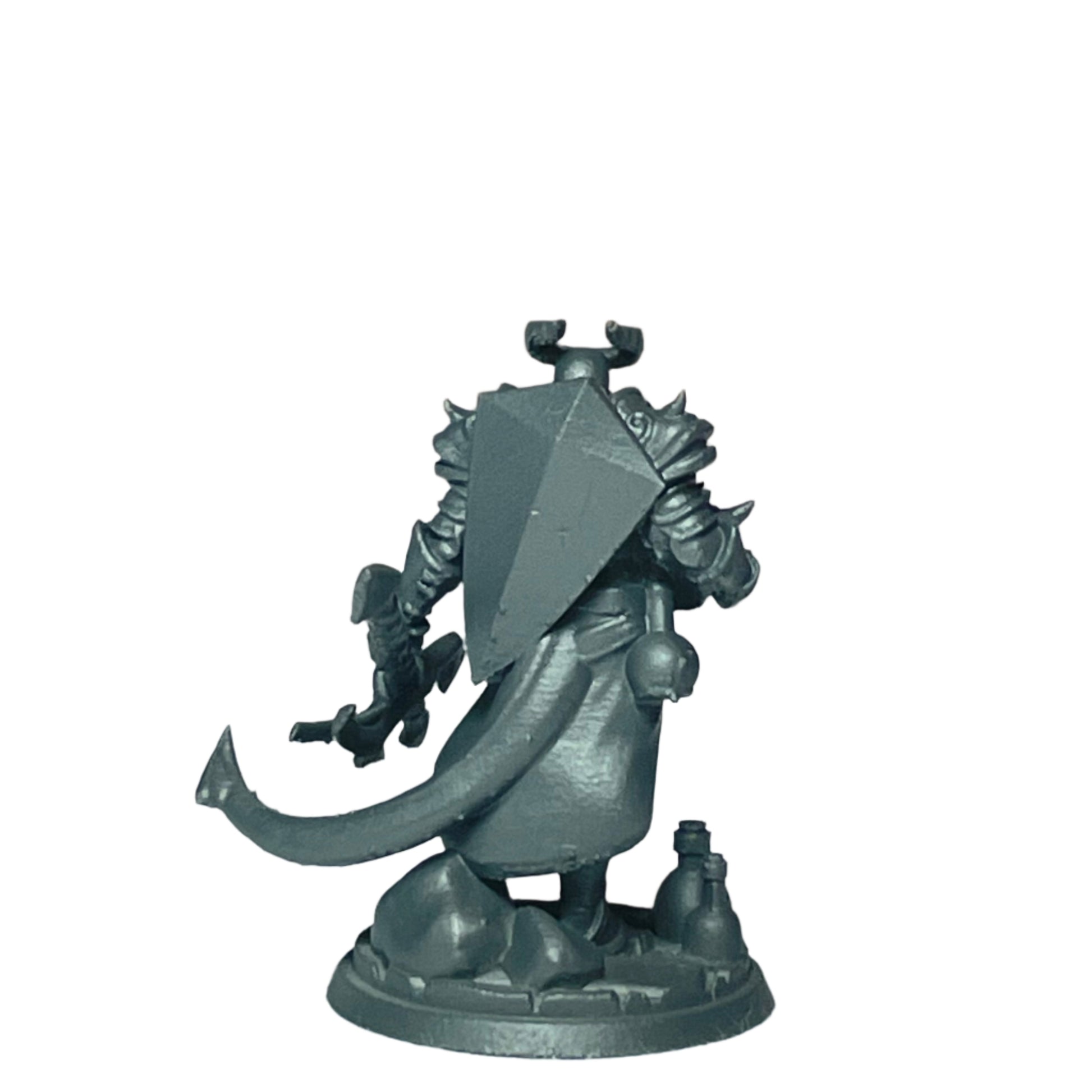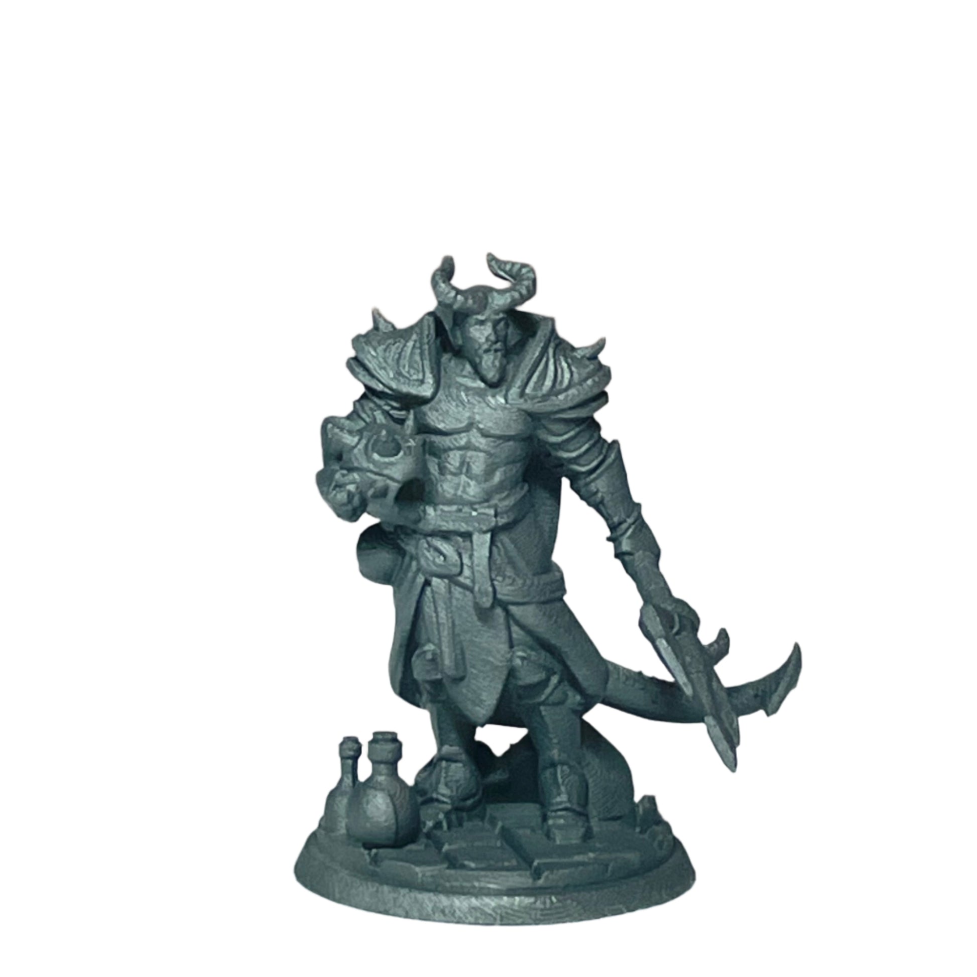 TitanCraft 28mm scale male tiefling wielding trident. Primed and ready to paint. Digital File not included. Designed by Titancraft. Miniature made by Warhold.