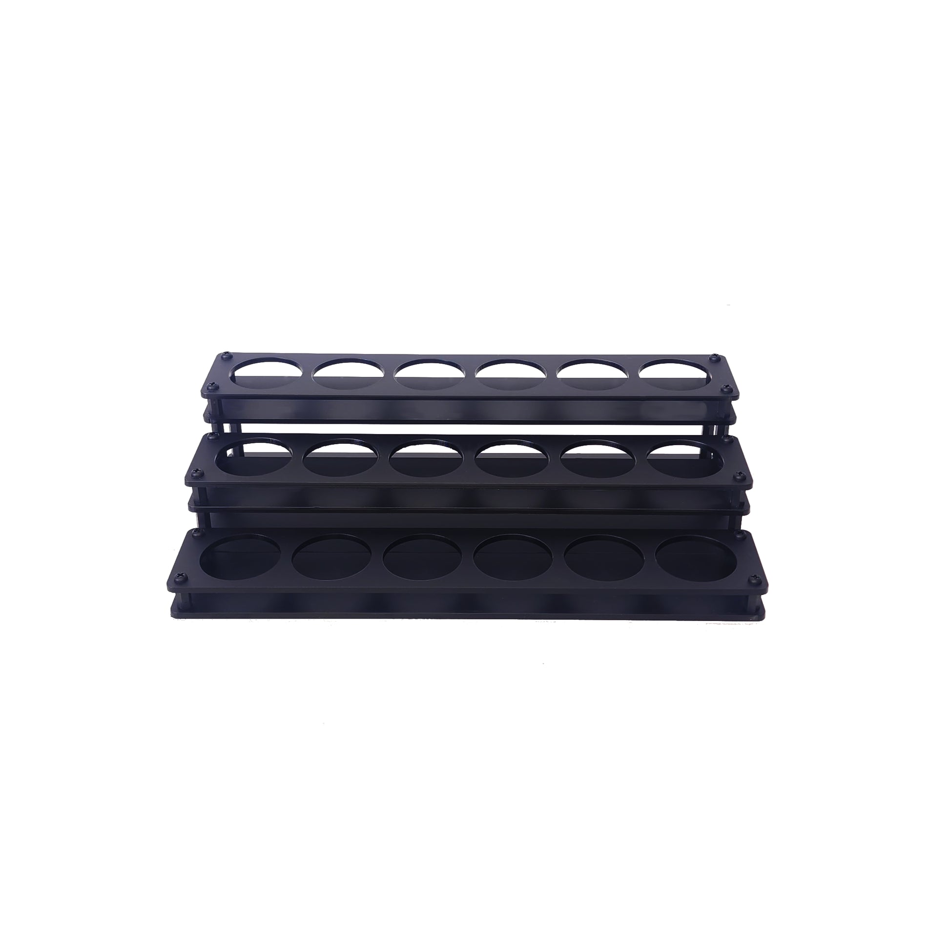 Featuring sleek black matte acrylic construction with nylon supports, our shelves provide durability and style for your workspace.
